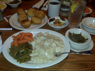 We also ate at Cracker Barrel. There is one about every 25 miles. For real!It was alright and quite cheap! Karl and I had chicken and dumplings with veggies, Shawn had catfish as he usually does when it’s available….